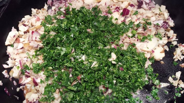 - Sauteed potatoes/red onion, kale and seasonings with cream cheese folded into it